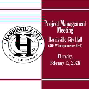 The Harrisville City Project Management Committee / Administrative Land Use Authority will be holding its next regularly scheduled meeting on Wednesday, February 12, 2026, at 9:00 am in the Harrisville City Council Chambers located at approximately 363 W Independence Blvd. For the agenda for this meeting, visit https://www.utah.gov/pmn/ or the city website.