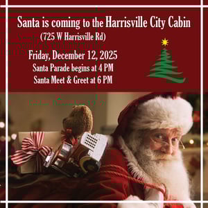 Harrisville City invited one and all to our annual Santa at the Cabin event. There will be a Santa Parade through the city starting at 4 PM. A Santa Meet and Greet will be held directly after at the Harrisville City Cabin located at approximately 725 W Independence Blvd.