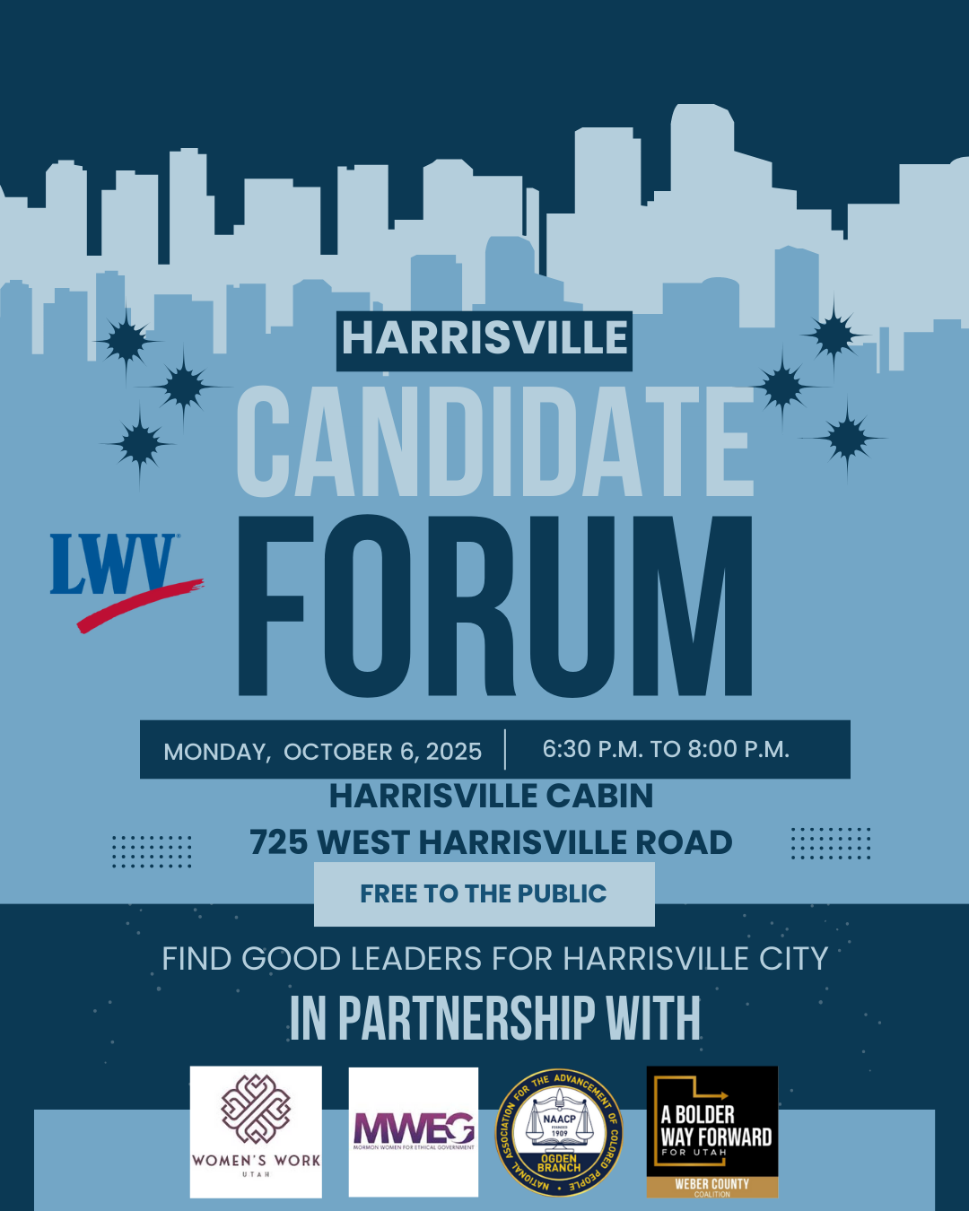 HARRISVILLE CANDIDATE FORUM October 6, 2025 Elections The following is sponsored by Weber County League of Women Voters. Post navigation Previous Previous post: HARRISVILLE ANNUAL FALL FESTIVALNext Next post: HARRISVILLE CITY IS HIRING