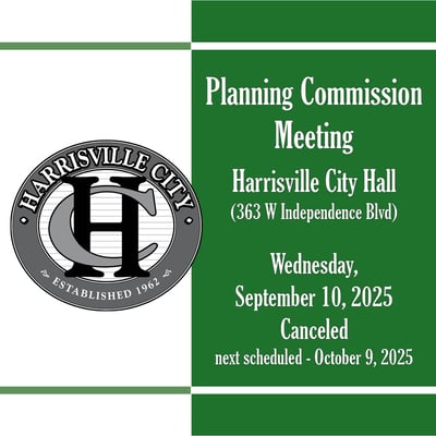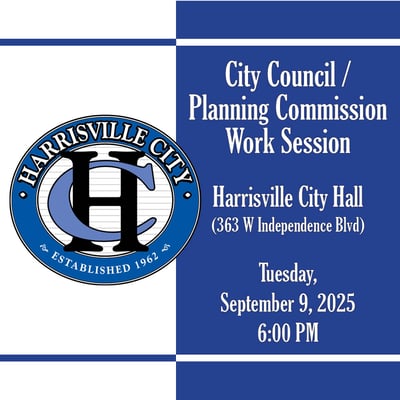 This month the Harrisville City Council and Planning Commission will be meeting together on Tuesday, September 9, 2025 at 6:00 PM for a work session…