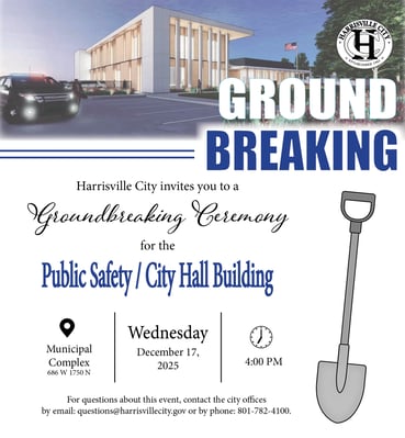 Harrisville City Council is excited to announce a ground breaking ceremony for the new Public Safety / City Hall building this Wednesday, December 17, 2025…