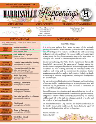 HARRISVILLE CITY COUNCIL MEETING – cancelled Harrisville City City Council meeting scheduled for Tuesday, August 12, 2025, has been cancelled due to the Municipal 2025…