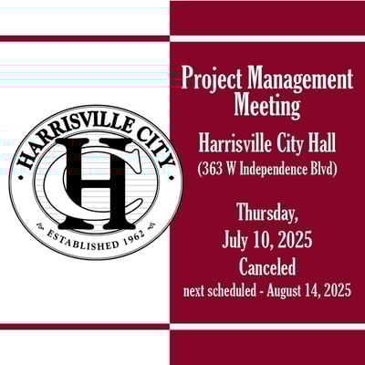 The Harrisville City Project Management meeting scheduled for Thursday, July 10, 2025, has been canceled. If there are any questions about this, contact the city…