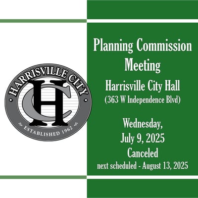 The regularly scheduled Harrisville City Planning Commission meeting for Wednesday, July 9, 2025, has been canceled. If there are any questions about this, contact the…